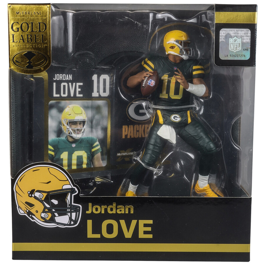 Figura posada de Jordan Love (Green Bay Packers) de 18 cm. Edición limitada Color Rush Gold Label exclusiva.