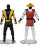 RAIDEN. Observando el desarrollo de los acontecimientos desde las alturas, el dios del trueno comprende las siniestras intenciones de Shao Kahn. Tras advertir a los miembros restantes del Torneo Shaolin, Raiden desaparece pronto. Se cree que se aventuró solo en el mundo exterior. Figuras a escala de 18 cm increíblemente detalladas basadas en la franquicia Mortal Kombat. Diseñadas con Ultra Articulación y hasta 22 piezas móviles para una amplia gama de poses. El paquete Deluxe de 2 incluye un montón de accesorios: 4 manos alternativas, 2 cabezas de Scorpion alternativas, 2 placas faciales de Raiden alternativas, Scorpion sin máscara, 2 efectos de relámpago y un kunai. También incluye 2 soportes de vuelo y una base de combate con fondo reversible. Los soportes de vuelo se pueden conectar a la base para recrear escenas de combate personalizadas. La figura se presenta en una caja con ventana temática de Mortal Kombat Klassic. Colecciona todas las figuras adicionales de Mortal Kombat de McFarlane Toys.